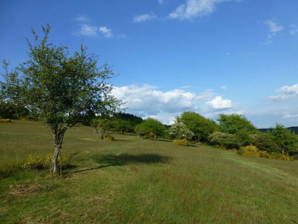 Besonders die Blicke ins Kesselinger Tal, auf die geschichtete Berglandschaft dahinter und bis zur Nürburg sind umwerfend schön. Wenn wir die Höhe schon fast erreicht haben, gilt es, zwischen zwei Varianten zu wählen: Die eine ist länger und führt auf breiteren Wegen hinauf. Die reizvollere, aussichtsreichere und kürzere, die aber schwerer zu finden ist, führt weglos durch Gesträuch und Wald auf eine höher gelegene Wiese mit einem Traumblick über das Ahrgebirge.