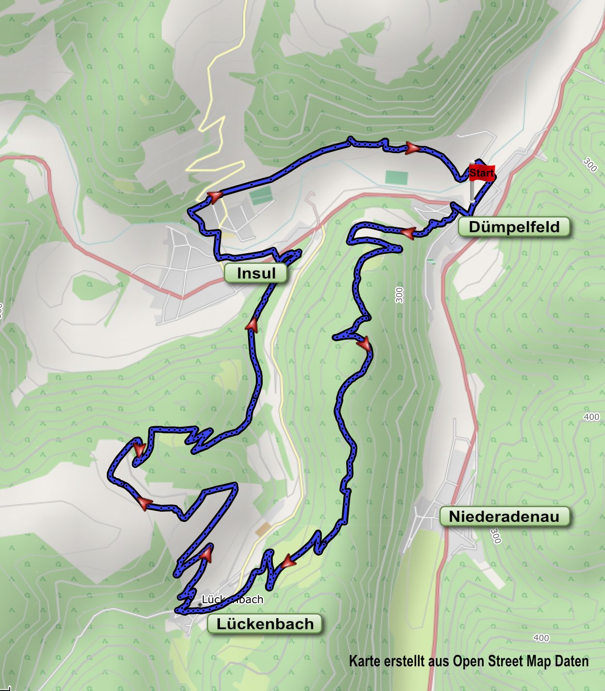Die heutige Runde war lange von der Flutkatastrophe betroffen, kann aber nun wieder in voller Länge begangen werden. Auf ihr lernen wir von der 3. Etappe das Hohnsköpfchen, die Landschaft um Lückenbach und den Hühnerküpp kennen. Anschließend verlassen wir den Original-Track und wandern über Insul zurück nach Dümpelfeld.