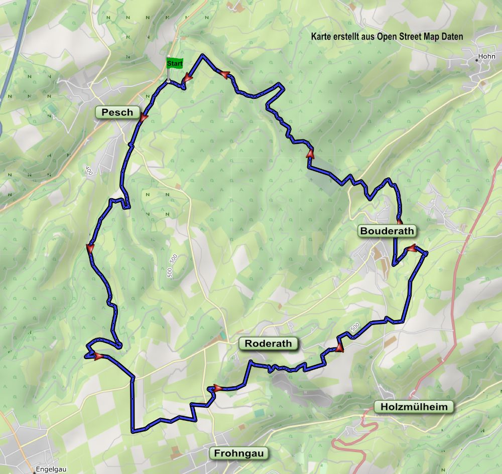 Die Eifel kann auch allen, die eine Region bereits gut zu kennen glauben, immer wieder neue Eindrücke vermitteln, sogar vor ihrer Haustür. Das beweist eine Rundwanderung südlich von Bad Münstereifel zwischen Pesch, Roderath und Bouderath. Da die Tour zu einem erheblichen Teil nicht über ausgewiesene Wanderwege führt, lässt sich diese Landschaft völlig neu erleben.
