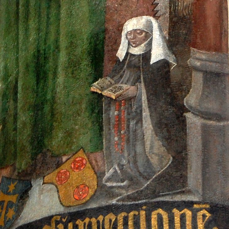 Unter den Bedürftigen der Stadt genoss Adelheid von Besselich einen sprichwörtlich legendären Ruf. Ihr Haus war Zufluchtsstätte der Armen, im Winter brannten beständig die Öfen und die Hilfesuchenden wurden dort mit Lebensmittel versorgt. Ihren Ruf als mildtätige Gönnerin festigte die Patrizierin mit zahlreichen großen und kleinen Spenden ? oftmals zugunsten der Kirche und des Gottesdienstes. Ihre wohl auffälligste und auch noch heute zu bestaunende Spende war und ist die Aufstockung des Turmes der St. Gangolf Kirche am Hauptmarkt, die Adelheid von Besselich aus eigenen Mitteln finanzierte ? zum Wohle der Stadt und ihrer Bürger. Ehe mit Clas von Zerf Diese Spendenbereitschaft kam jedoch nicht aus heiterem Himmel. Als sie sich mit Clas von Zerf verheiratete, wusste sie wohl noch nicht, welchen Wandel ihr Leben vollziehen wird. Clas entstammte einer vermögenden Metzgerfamilie aus Zerf. Er selbst erlernte das Handwerk, nicht zuletzt auch wegen seiner kräftigen Statur. Gottfried Kentenich: "In den Tagen etwa, da Johann von Baden in Trier einritt, wird sie [Adelheid] ihm [Clas] die Hand zum Ehebund gereicht haben. Freude und Leid hat sie mit ihrem Manne geteilt, und der Tage des Leids sind mehr gewesen, als Freude." (Kentenich, Gottfried: Aus dem Leben einer Trierer Patrizierin, Trier 1909, S. 32.)Oft trieb er sich herum, verspielte seinen Besitz, wurde gar von seinen eigenen Freunden und Angehörigen festgesetzt und dem Stadtgericht übergeben, wie zeitgenössische Prozessakten zeigen. Sein Gelöbnis nach Besserung hielt nicht lange. So geriet er 1496 in Köln in einen Streit, in dessen Folge er die Stadt befehdete und deren Bürger auf ihren Kauffahrten zu schädigen suchte. Zwischenzeitlich gelang es ihm jedoch, sich in das hohe Amt des Stadtschöffen einzukaufen, später wurde er Bürgermeister. Abermals im Konflikt mit der Stadt Trier stehend floh er zusammen mit Adelheid nach Metz, was die Konfiskation des ehelichen Besitzes führte.1493 stirbt Clas von Zerf, was das Leben Adelheids wiederum herumwirft. Im gleichen Jahr erhielt sie nach Aussöhnung mit Stadt und Erzbischof ihre Güter zurück und zog mitsamt des Leichnams ihres Gatten wieder in Trier ein. Karitative Tätigkeit Ab diesem Zeitpunkt setzte Adelheids umfassende karitative Tätigkeit ein. Neben dem Turm St. Gangolf stiftete sie vermutlich auch einen im gotischen Stil ausgeführten Brunnen auf dem Hauptmarkt ? dem Vorgängerbau des heutigen barocken Petrusbrunnens. Desweiteren berichten die Quellen von einem eisernen Geländer am Aufgang der ehemaligen St. Simeonskirche (heute Porta Nigra), das am Anfang und Ende Wappen Adelheids von Besselich zierten.Das einzige Bildnis Adelheids findet sich heute an der "Judassäule" in der Liebfrauenkirche. Dort steht sie zusammen mit Clas von Zerf ? eindeutig identifizierbar an ihren individuellen Wappen ? am Fuße des Apostel Judas (Thaddäus): Ein Hinweis darauf, dass Adelheid von Besselich die Bildnisse der zwölf Apostel ? jeweils einer pro Säule ? stiftete. Einst außerhalb der Stadtmauern gelegen und häufiges Ziel von Prozessionen, ließ Adelheid Wege zu den Abteien St. Maximin, St. Matthias und St. Marien anlegen; in der Pfarrkirche St. Gangolf besaß sie einen eigenen, kunstvoll gestalteten Kirchenstuhl. Im Jahre 1525 stirbt Adelheid von Besselich in Trier. Foto: Neumann
