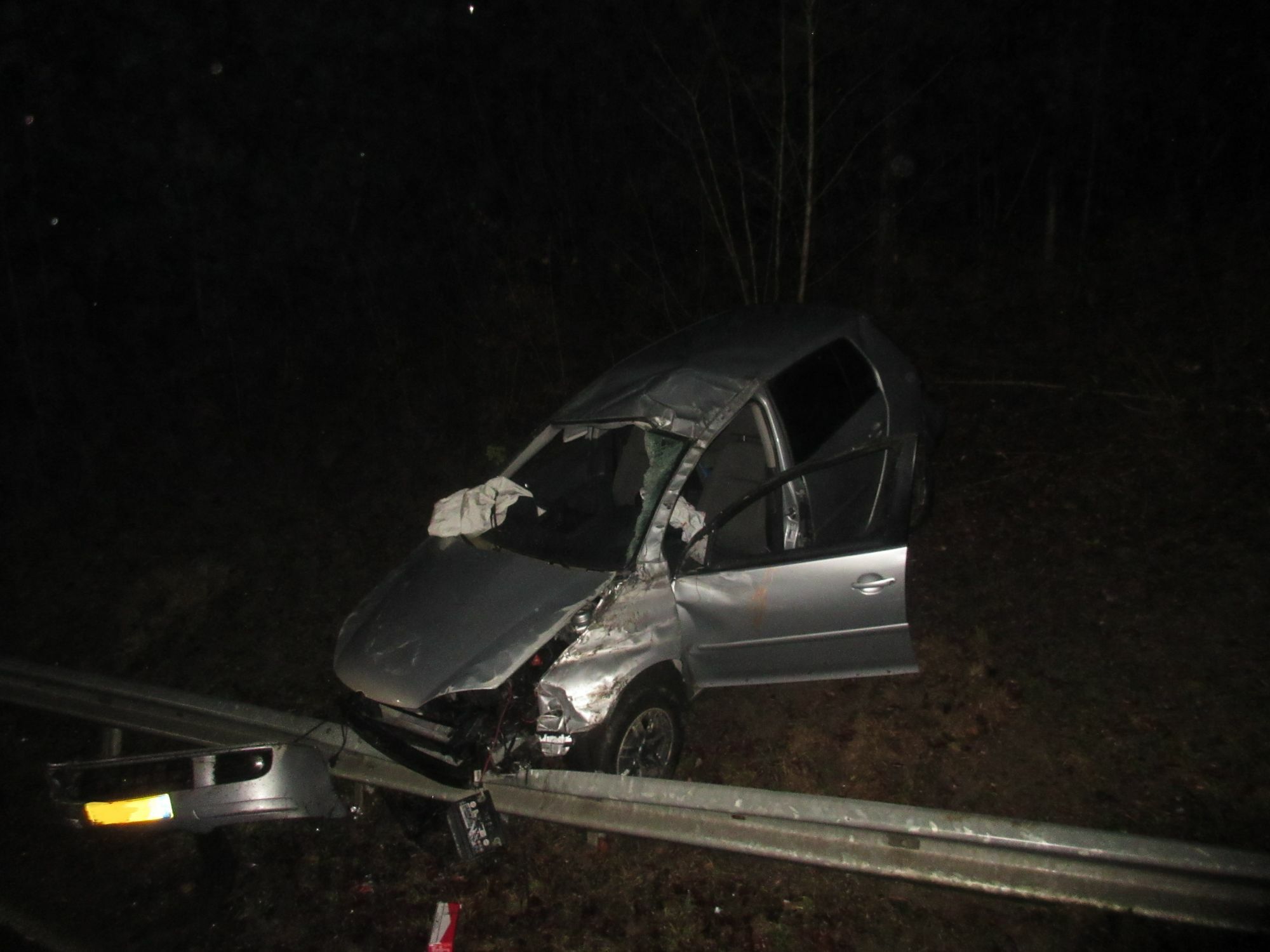 Beim Versuch, das Fahrzeug wieder unter Kontrolle zu bekommen, überschlug sich dieses und rutschte auf dem Dach quer über die Straße. Mindestens zwei Mal prallte der Golf gegen die Leitplanke der gegenüberliegenden Straßenseite.