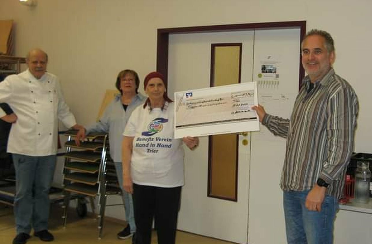 Vor dem Essen überraschte die 1. Vorsitzende Marina van Asch vom Benefiz-Verein Hand in Hand Trier die Mitarbeiter und Besucher des Treffpunkt am Weidengraben mit einem großzügigen Geschenk: Sie überreichte eine Spende in Höhe von 1.570 Euro.