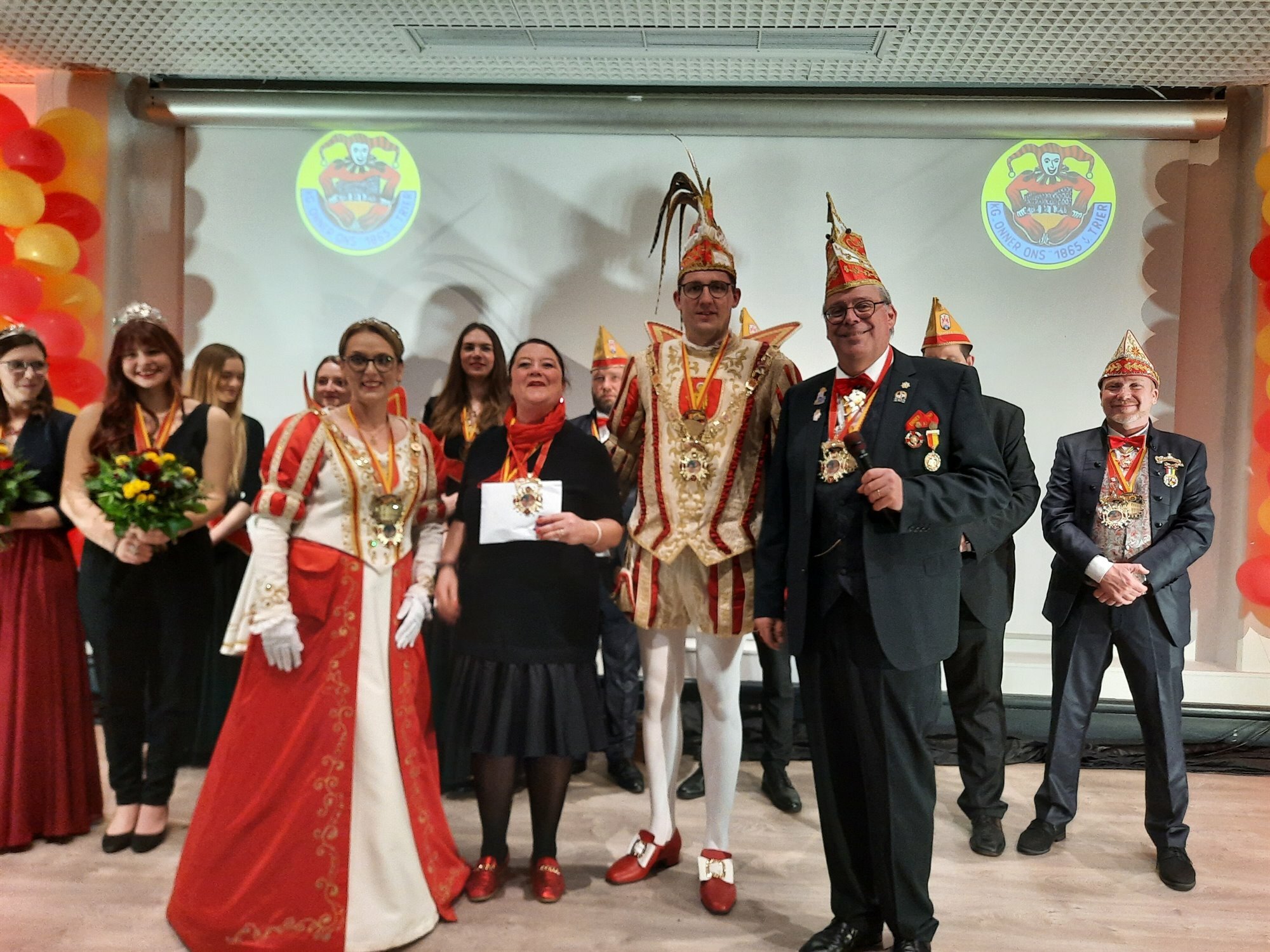 (Red) In ihrer Residenz in der City Hall des FourSide Plaza Hotels konnten die Sitzungspräsdidenten der KG Onner Ons Harald Reinhard und Joachim Wagner sowie Christian Klein, Sitzungspräsident der KG Trier-Süd 1923, die als Kooperationspartner gemeinsam mit der KG Onner Ons durch die Session gehen, zahlreiche Karnevalisten begrüßen. ( https://tinyurl.com/4va5fvah ) Und natürlich gab es zahlreiche Ehrungen: Die Vereinsmiglieder Sandra Faldey und Tobias Reinhard wurden von Uli Krugmann, Vizepräsident des LVRML und Sebastian Schmitz, Schatzmeister des LVRML mit dem Verdienstorden des Landesverbandes Rhein-Mosel-Lahn im Bund Deutscher Karneval ausgezeichnet.