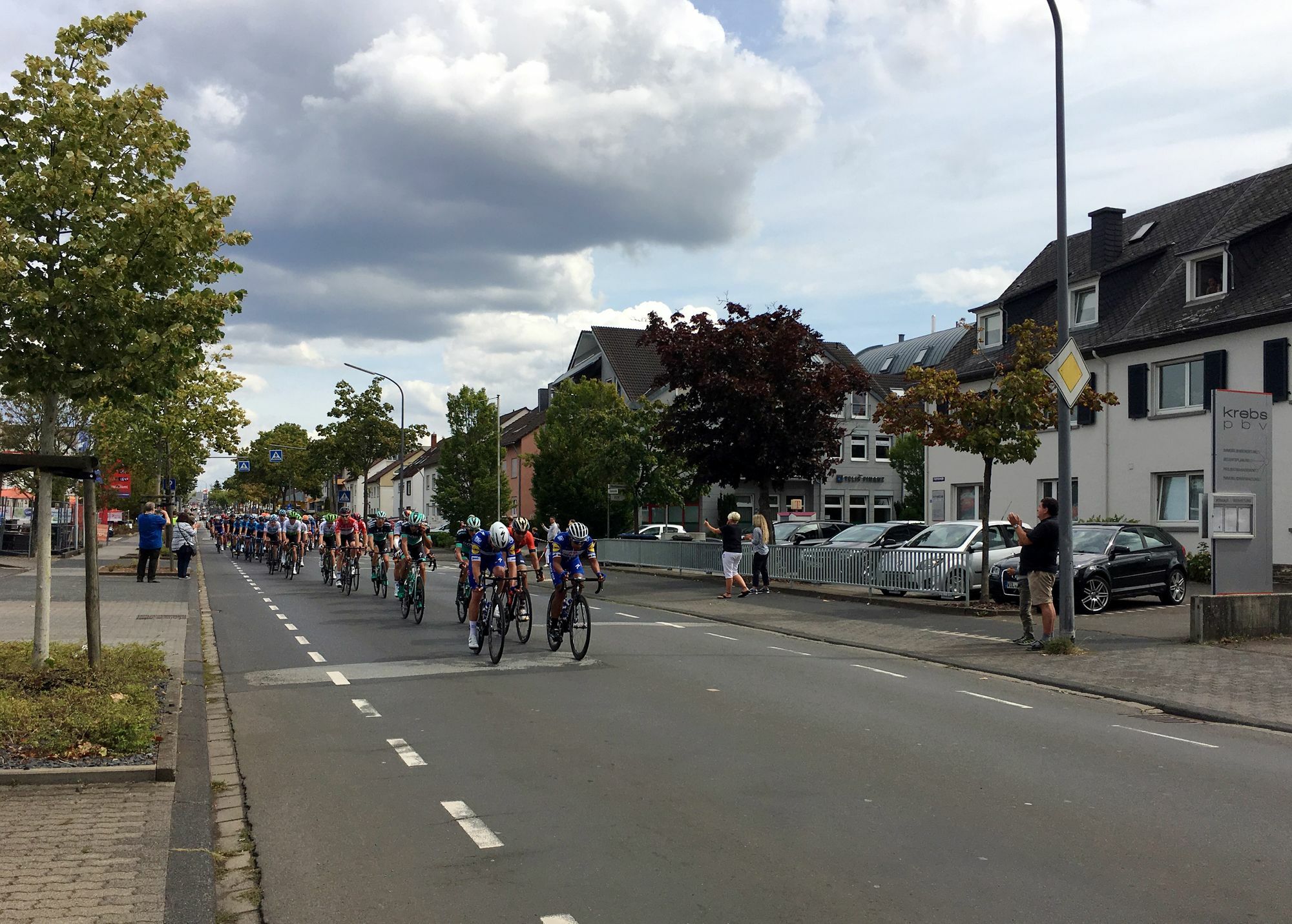 Die Strecke der Tour ist mit den Kommunen und Regionen sowie den Behörden und Institutionen abgestimmt; Vier Etappen in vier Tagen durch fünf Bundesländer. Auf der abwechslungsreichen Strecke über 737,5 Kilometern mit 13 Berg- und acht Sprintwertungen treten Klassikerspezialisten gegen Sprinter an und wetteifern um Tagessiege und Wertungstrikots. Mit dabei sind der „Tour de France“-Sieger Geraint Thomas, der Zweitplatzierte Tom Dumoulin sowie Weltklasse-Radler Romain Bardet. Auch deutsche Top-Fahrer wie Ackermann, Kittel, Greipel, Walscheid sind am Start. Mit 15 deutschen WorldTour-Fahrern ist zudem die Mehrheit der deutschen Elite bei der Deutschland Tour dabei. Die erste Etappe führt die Radrennfahrer von Koblenz nach Bonn in einer Gesamtlänge von 157 Kilometern. Die zweite mit einer Länge von über 196 Kilometern geht von Bonn nach Trier und damit quasi direkt „an unserer Haustür vorbei“. Am Freitagvormittag ist das Peloton vor dem Poppelsdorfer Schloss gestartet und fährt über Meckenheim in Richtung Altenahr, weiter durch das wellige Profil der Vulkaneifel mit den Streckenpunkten Nürburgring und Daun und schließlich auch durch Wittlich (Bilder). Die erste Bergwertung des Tages erfolgt am Anstieg über 2,5 Kilometer in Klausen. Weiter geht es der Mosel entlang, dann - bei Rennkilometer 143,5 - noch ein knackiger Anstieg (Auf Zummet), der das anspruchsvolle Finale dieser Etappe einläutet. Über Naurath und Thomm werden schließlich in Korlingen die letzten Bergpunkte vergeben. In Sichtweite bereits der Zielort: Trier. Dort von der Arena zur Schlussrunde über die B49 bis zum Moselstadion, durch die Innenstadt zur Porta Nigra und weiter zum Petrisberg - der letzten Schwierigkeit des Tages. Oben angekommen, werden wertvolle Bonussekunden vergeben auf den letzten 6,5 Kilometer bis zum Ziel bei der Arena. Am nächsten Tag startet die dritte Etappe von Trier bis nach Merzig im Saarland. Die Fahrer absolvieren erneut ein Klassikerprofil mit fast 2.900 Höhenmetern und das auf einer Strecke von 177 Kilometern. Die letzte und vierte Etappe wird von Lorsch nach Stuttgart zurückgelegt. Gesamtlänge hier: 207 Kilometer. Alle weiteren Infos zu der „Deutschland Tour 2018“ unter www.deutschland-tour.com. Fotos: K. Becker